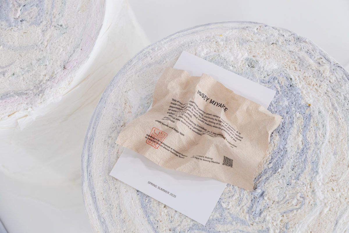 ISSEY MIYAKE, the fashion brand, presented “Kamiko” — garments made of paper — in its Spring / Summer 2025 collection, developed in collaboration with centre Inc. The project explored washi, traditional Japanese paper made from hemp fibers, reflecting the intersection of ancient craft traditions and contemporary design.